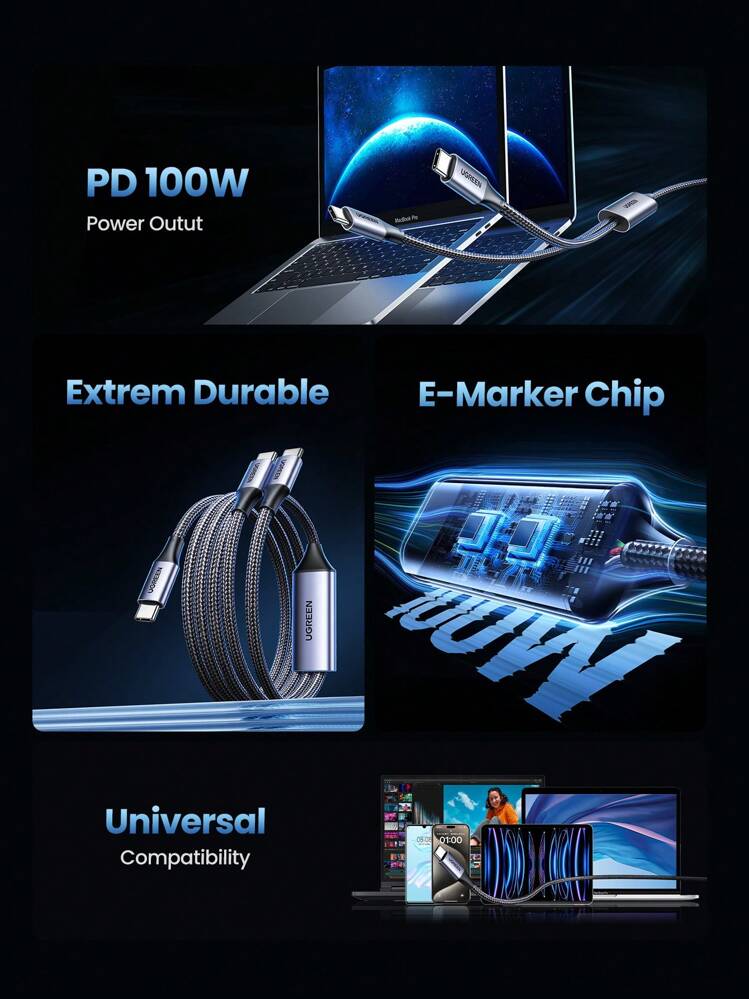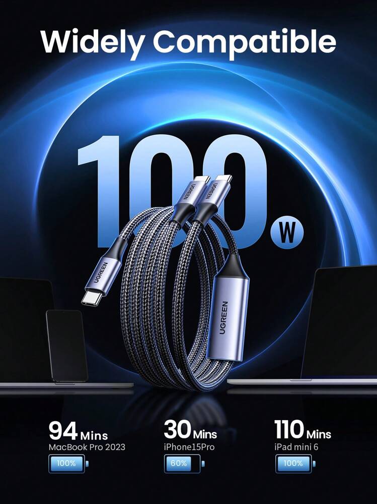 سلك شاحن 2 في 1 من UGREEN بقوة 100W