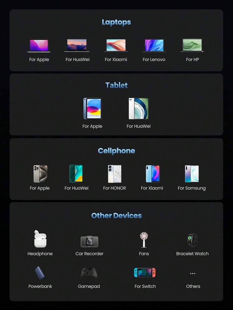 الأجهزة المتوافقة: أجهزة لوحية, أجهزة كمبيوتر محمولة, هاتف خلوي, ساعة ذكية, مفتاح, سماعات أذن