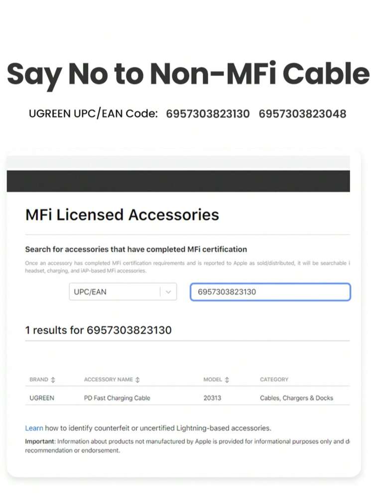 من UGREEN متوافق مع Iphone 14 13 12 Pro Max MFi أصلي معتمد