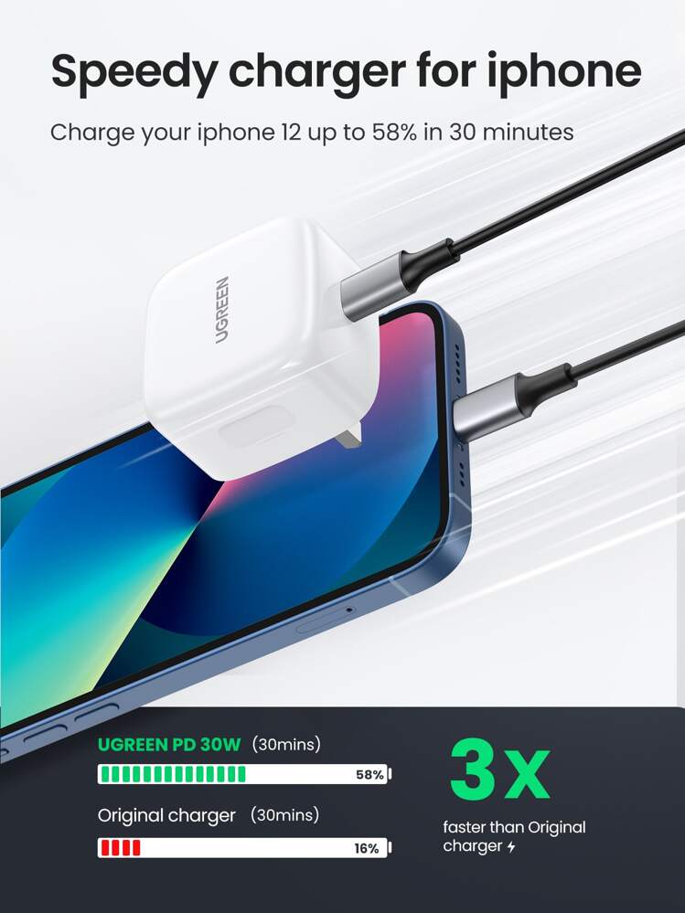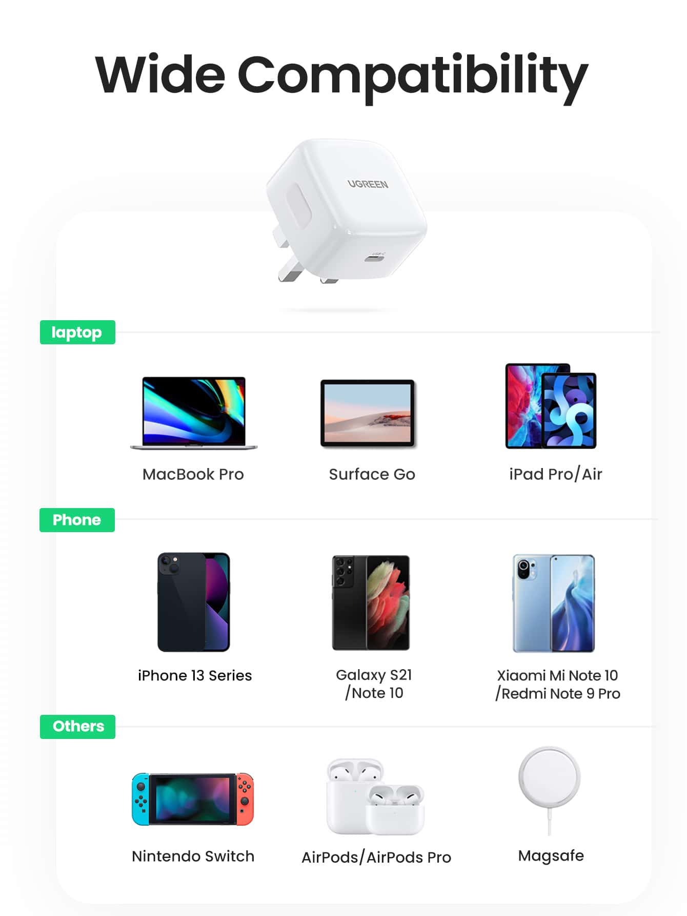 بمنفذ USB C - شاحن سريع من نوع PD الطاقة من النوع C متوافق مع هواتف الايفون والجالكسي والآيباد وسماعات الأيربودز